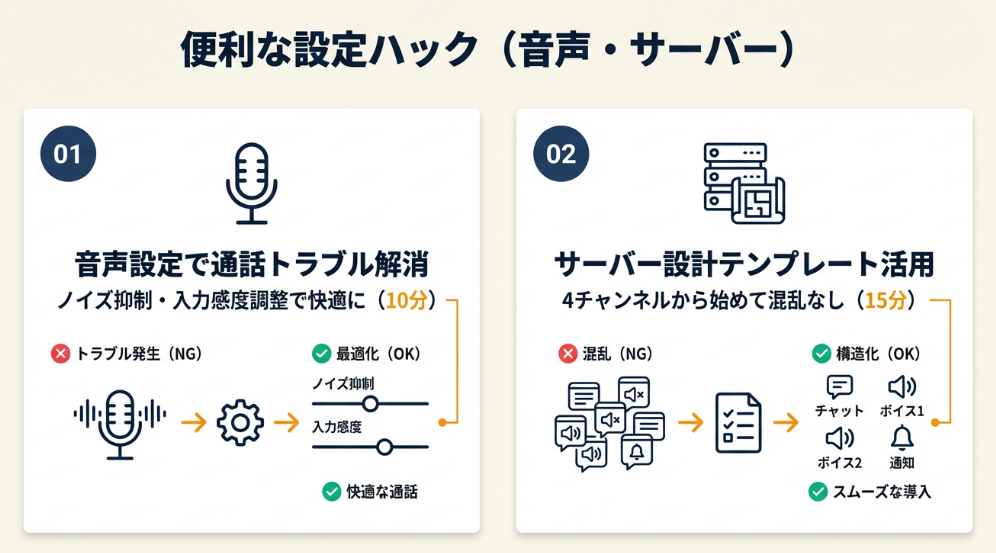 タイプ3「Discord使い方は6項目でチェック」と「Discord使い方は5つの仕組みで最適化」を読み、設定を見直す