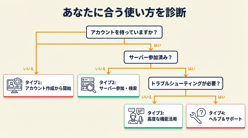 自分の状況に合う対応策を知りたいDiscord使い方の対応を3分で診断3分