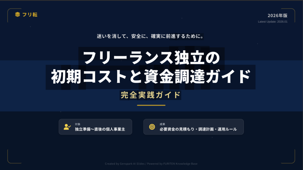 本記事は「フリーランス独立の初期コストと資金調達ガイド」の内容を元に作成しています。 より詳しい図解・チェックリスト・計算シートは、以下からダウンロードできます。