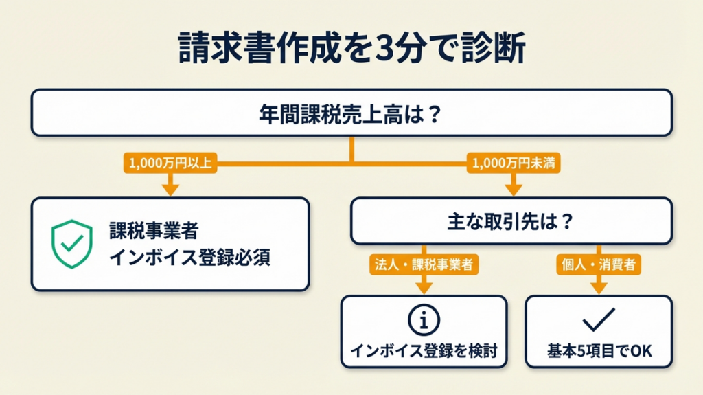 | 自分の状況を確認したい | 請求書書き方を3分で診断 | 3分 |
