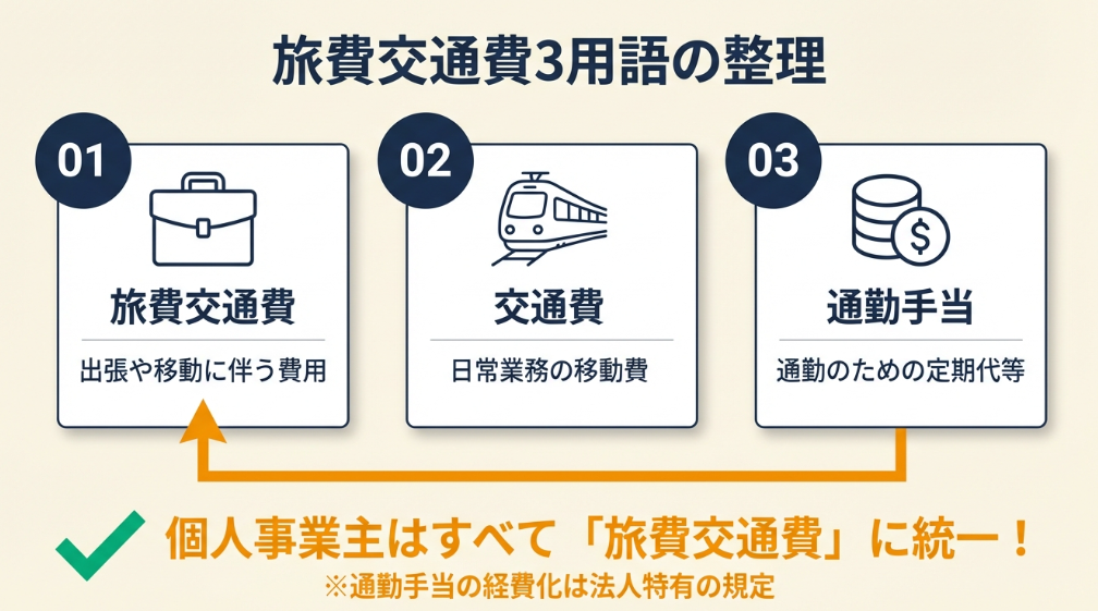 「旅費交通費」「交通費」「通勤手当」の違いがはっきりしないと、仕訳の段階で混乱してしまいます。この3つの違いを正確に理解することが、正しい仕訳の第一歩です。