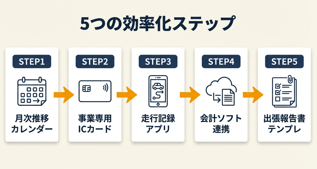 直近1か月の交通費の領収書と利用履歴を集め、事業用とプライベートを分類する(所要時間:約30分)