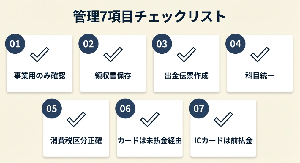 - 事業専用ICカードを発行し、プライベートと完全分離する