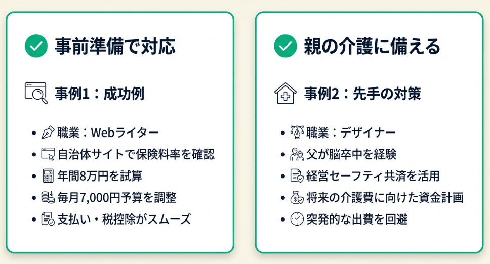 フリーランスの体験談をもとに成功パターンと失敗リスクを解説します。事前準備の有無で、介護保険料への対応が大きく変わります。