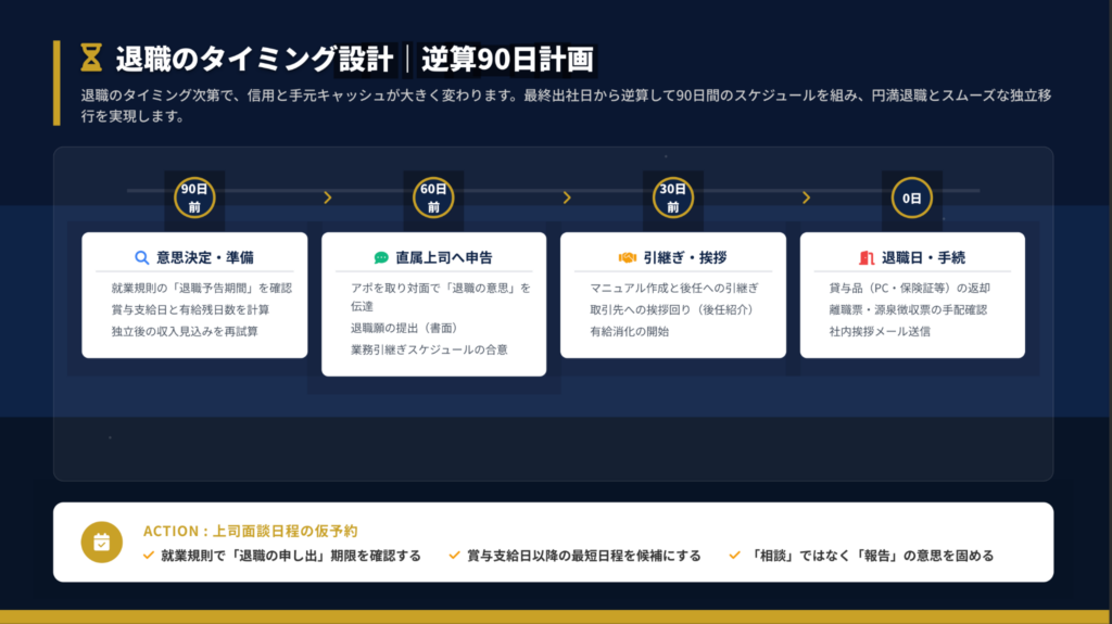 退職のタイミングと手続きを具体的に把握したい低リスク独立の退職は90日逆算