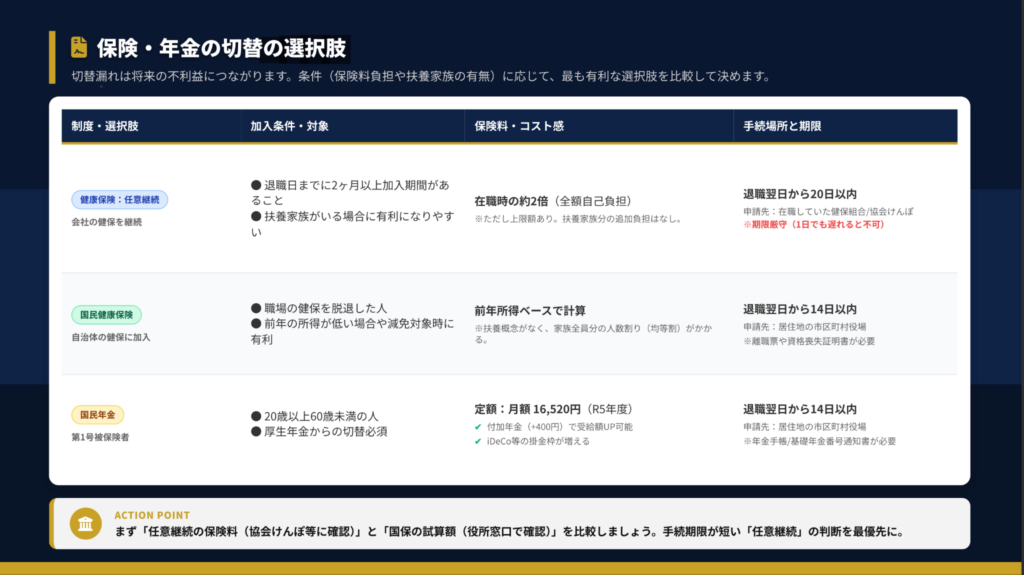 「保険や年金の手続きがよく分からない」という声は多いです。切替漏れは将来の不利益につながります。