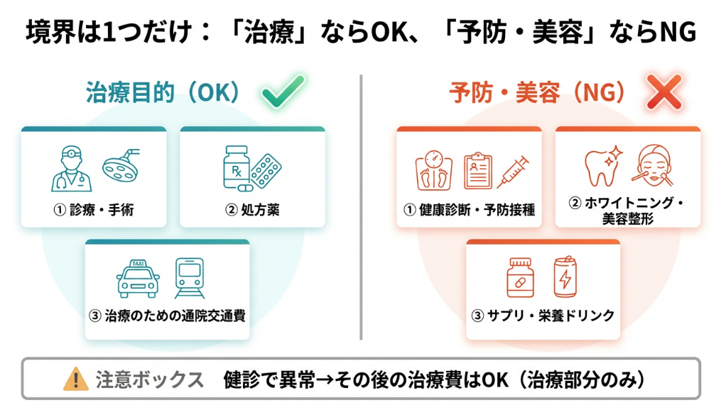 ・治療目的の費用が対象、予防目的は原則対象外