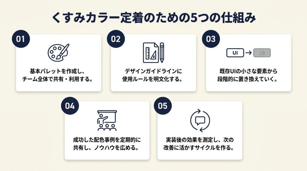 くすみカラー配色を定着させる:3色・トーン統一で今日から始める