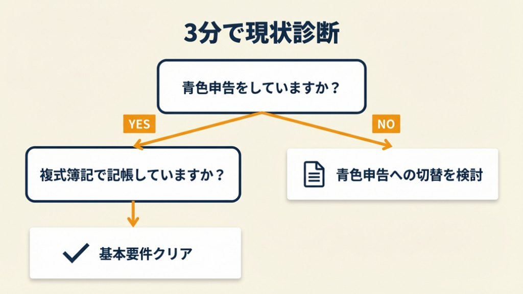 - 【最初の一歩】: 直近の確定申告書(第1表)と青色申告決算書を手元に出し、前年度と当年度の「所得金額」を比較してみる(5分)