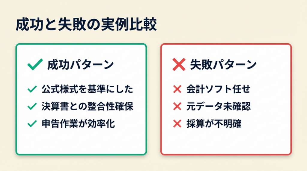 - 【注意点】: 業種特有の科目(例: イラストレーターの「素材購入費」は消耗品費か外注費か)については対応表だけで判断せず、初回は税理士か税務署の無料相談で確認することを推奨します。