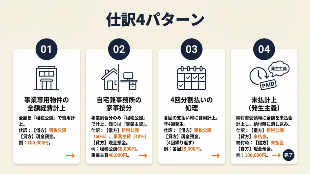 固定資産税の仕訳は租税公課で4パターン