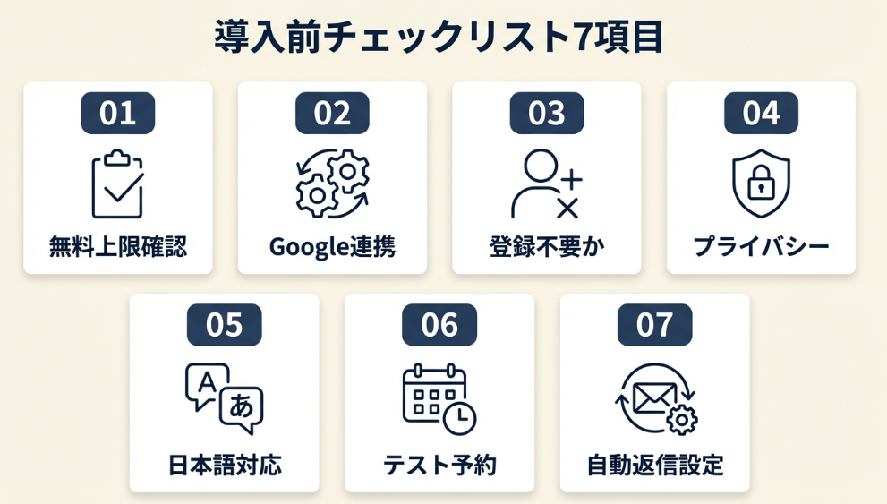 導入前に確認すべき項目を知りたい導入前チェックは7項目で確認5分