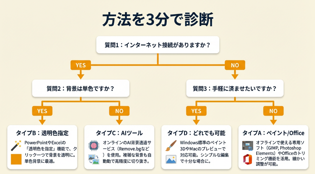 | タイプB | Excelの「透明色を設定」またはAdobe Expressで即処理 |