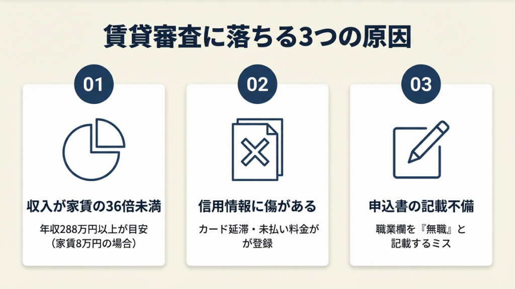賃貸審査に落ちる3つの原因