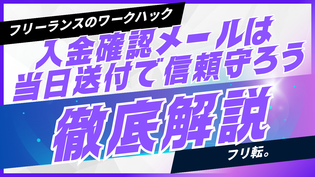 入金確認メールは「いつ・どんな文面で送るか」が取引関係を左右します。入金済みの場合は当日または翌営業日に感謝のメールを送り、未確認の場合は「催促」ではなく「状況確認」として丁寧な文面で連絡することが、フリーランスの信頼を守るための基本です。
