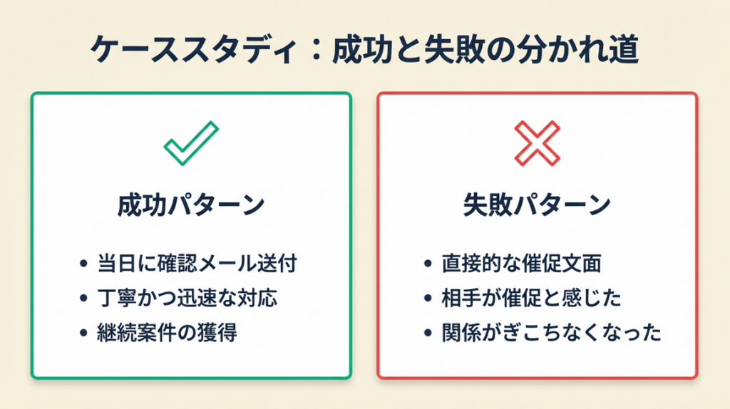 実際のフリーランスがどのように入金確認メールを活用しているか、成功・失敗の2つのケースで見ていきます。