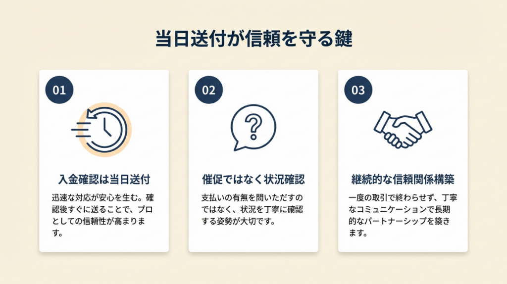 入金確認メールで信頼を守る:当日送付が取引継続の鍵