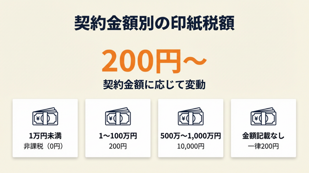 - 契約金額別の印紙税額(200円〜60万円)を早見表で確認