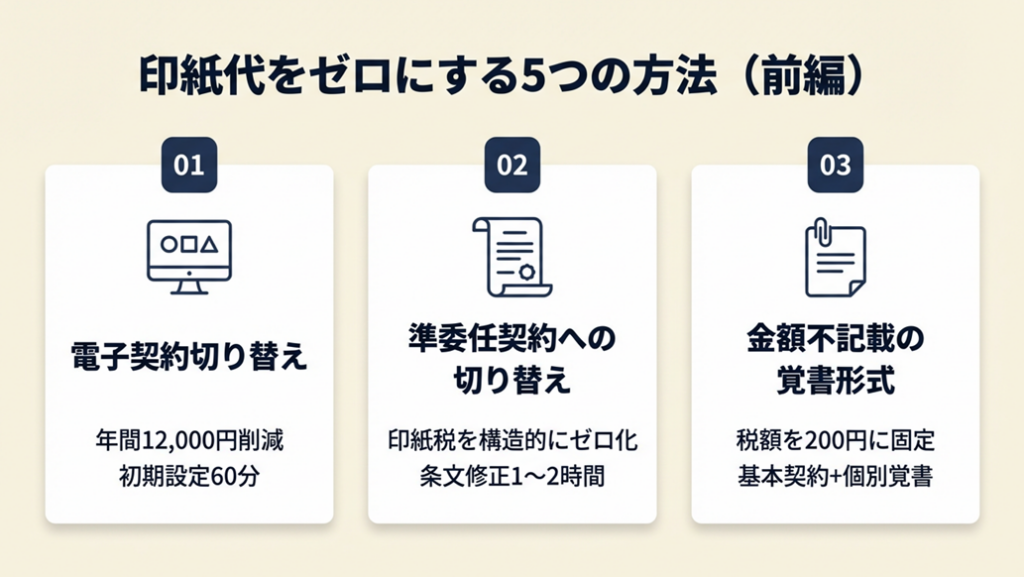 - 電子契約・準委任切替で印紙代を年間ゼロにする5つの方法