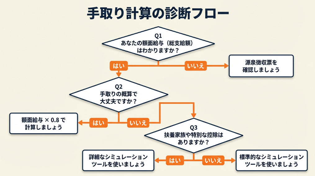 「自分の手取り計算方法はこれで合っている?」——迷ったときは以下のフローで判定してください。