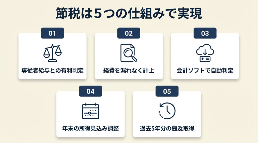 事業専従者給与との併用はできないため、世帯全体の税負担を比較して最適な選択をすることが節税の鍵です。