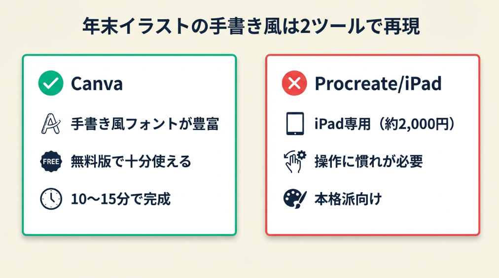 | 手書き風をデジタルで作りたい | 年末イラストの手書き風は2ツールで再現 | 5分 |