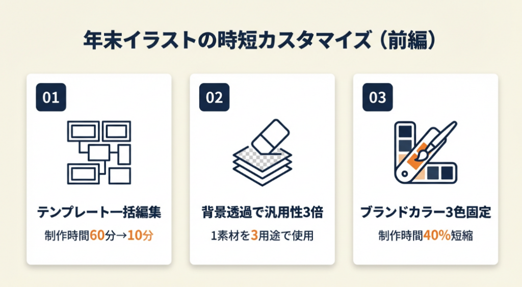 年末イラストの時短カスタマイズは5つの仕組みで解決