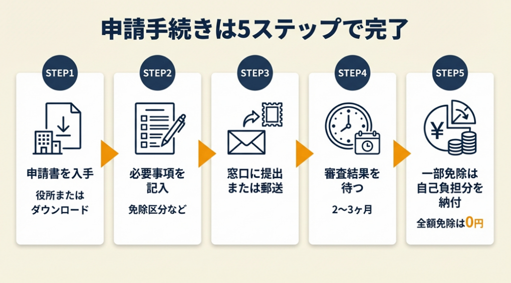 注意点: 一部免除が承認された場合、自己負担額を必ず納付してください。自己負担分を払わないと「未納扱い」になり、免除の意味がなくなります。「免除を受けた=何も払わなくてよい」は全額免除の場合のみです。