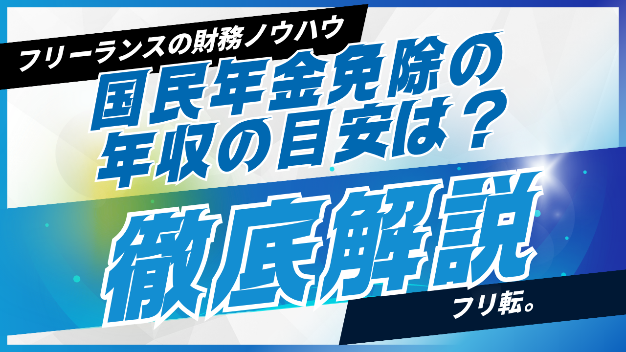 A: 年収(売上)ではなく「所得(売上-経費-控除後)」で判定されます。扶養親族なし・単身の場合は前年所得が67万円以下で全額免除の対象です。個人事業主で売上100万円・経費33万円・青色申告控除65万円の場合、所得は2万円程度となり全額免除の基準を大幅に下回ります(日本年金機構「国民年金保険料の免除制度・納付猶予制度」)。