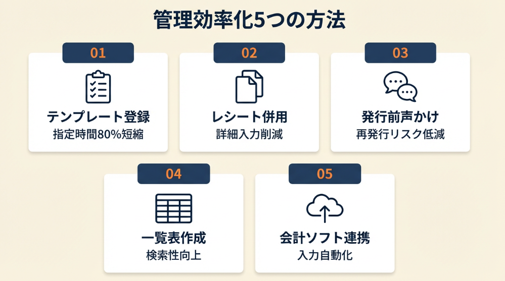 発行前に但し書きを伝えることで、修正や再発行の手間を90%削減できる