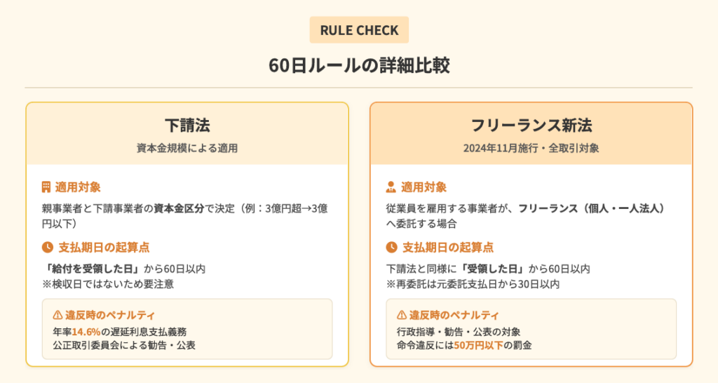 - 下請法・フリーランス新法の60日ルールと違反時のリスク